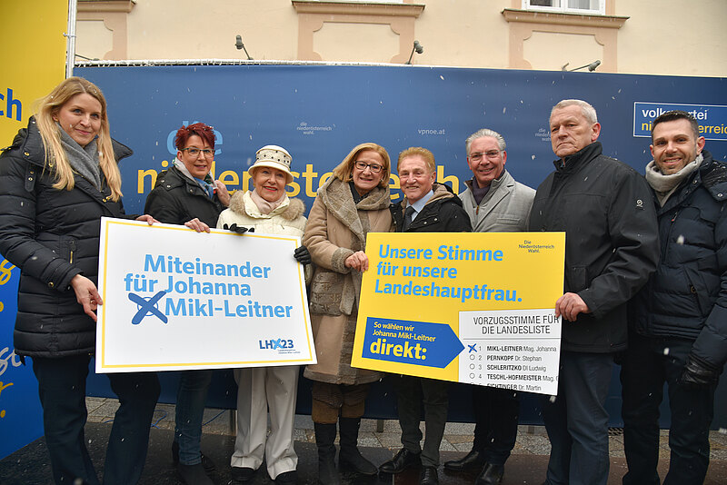 „Hinter unserer Landeshauptfrau Johanna Mikl-Leitner stehen zwei große Bewegungen. Einerseits die Volkspartei hier im Bezirk Baden und im ganzen Land. Und andererseits haben sich in unserer Region Unterstützerinnen und Unterstützer aus verschiedenen politischen Lagern gefunden, die aktiv mit ihrem Namen für Johanna Mikl-Leitner werben. Wir werden gemeinsam in den nächsten Tagen alles geben, damit Johanna Mikl-Leitner Landeshauptfrau von Niederösterreich bleibt. Damit unser Land Blau-Gelb bleibt und nicht Blau-Rot wird. Damit wir gerade hier bei uns im Bezirk wichtige Projekte, wie zum Beispiel den Ausbau der Fernwärme, den Neubau des Pflegeheims in Bad Vöslau oder weitere Verbesserungen für Pendler umsetzen können. Wir leben im wohl schönsten Land der Welt – sorgen wir gemeinsam dafür, dass es so bleibt“, so Kainz.